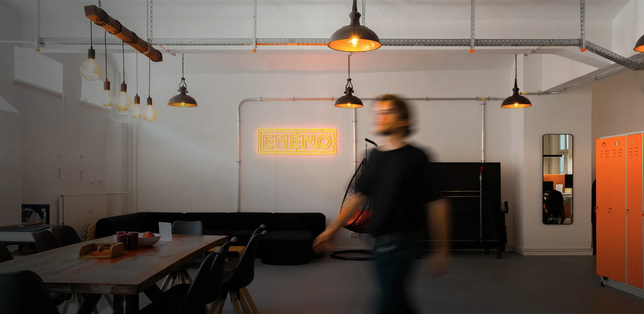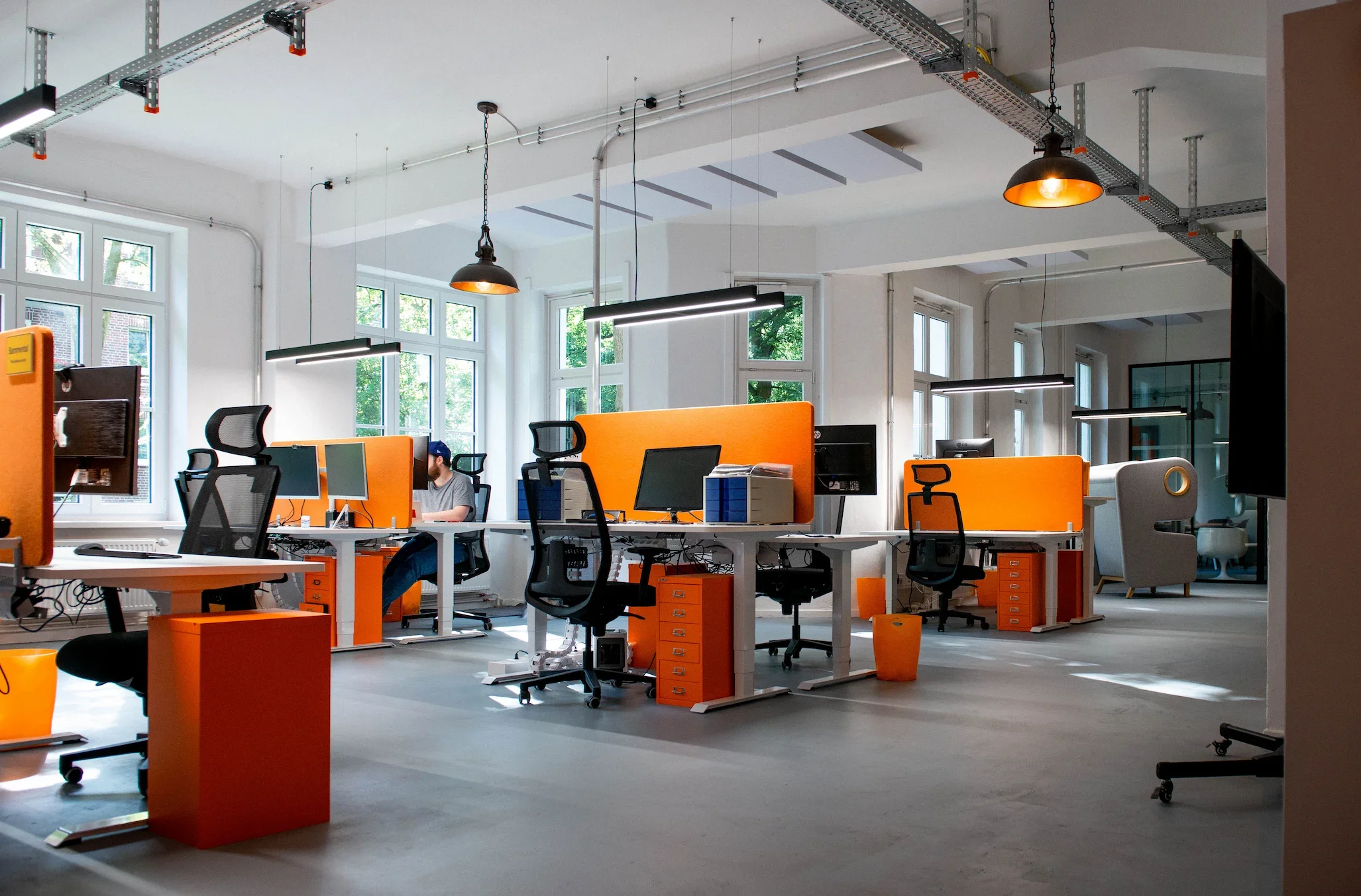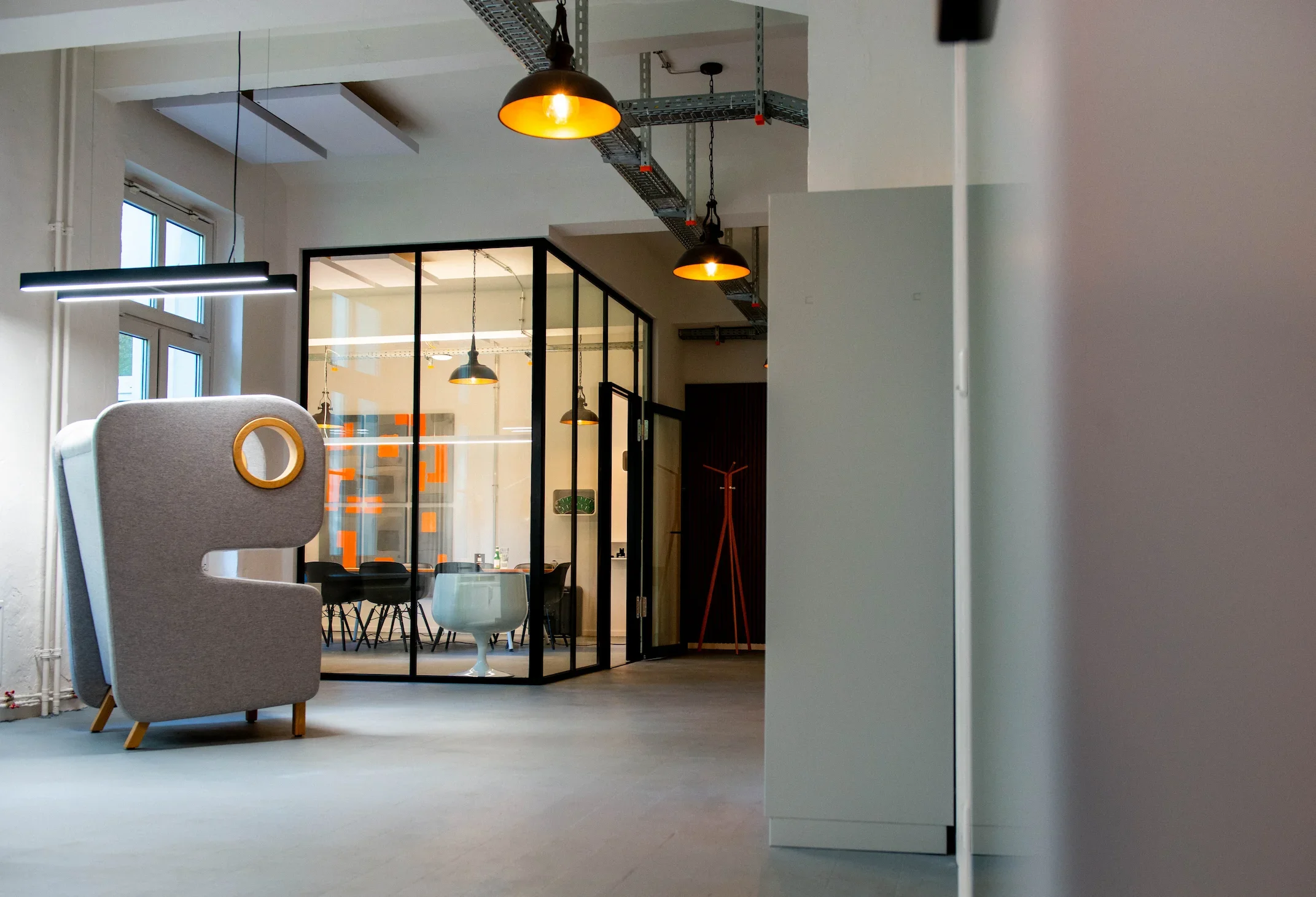 Our office is a converted factory loft where industrial history meets modern high-tech. It’s a place designed for focus and flow – featuring soundproof booths for deep work and spacious areas for collaborative brainstorming.